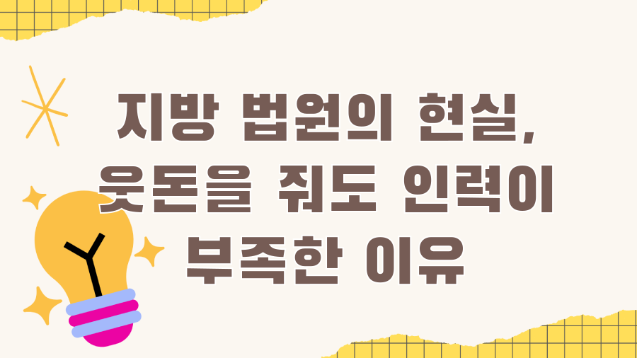 - 열악한 근무 환경: 지방 법원은 대도시에 비해 교통, 문화 시설 등 생활 인프라가 부족한 경우가 많습니다.